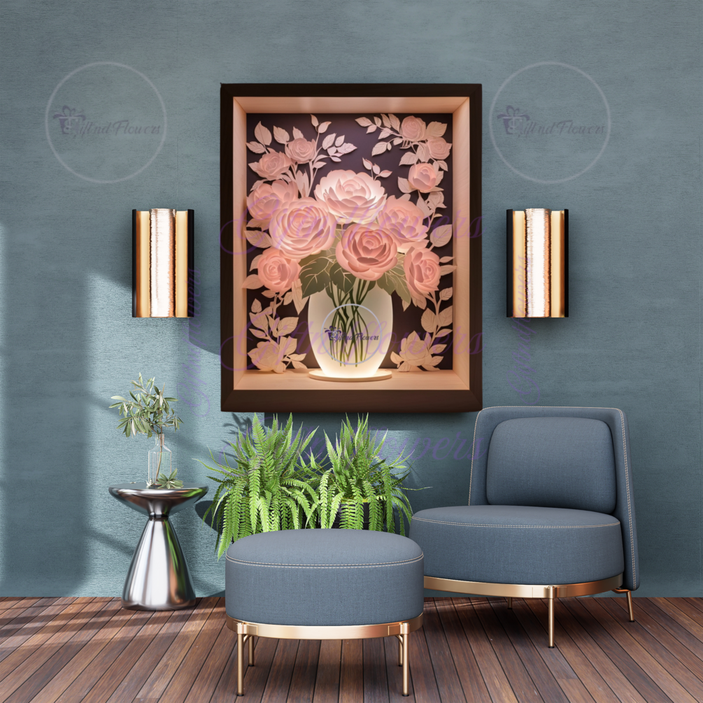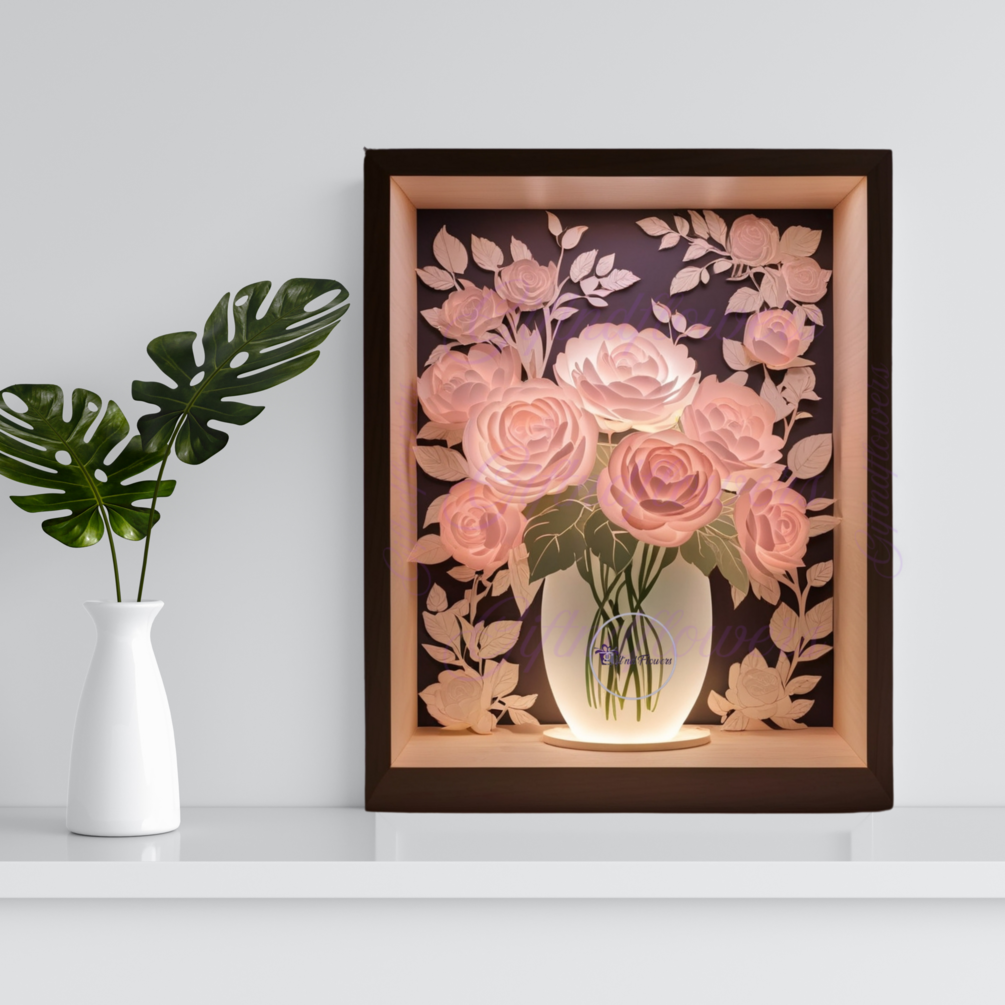3d shadowbox svg, floral vase svg, layered paper craft, led light box svg, cricut wedding decor, peony svg, rose svg, glowforge svg, 3d flower svg, romantic svg, bridal shower gift svg, wedding centerpiece svg, vase svg cut file, floral shadow box, handmade wedding decor svg