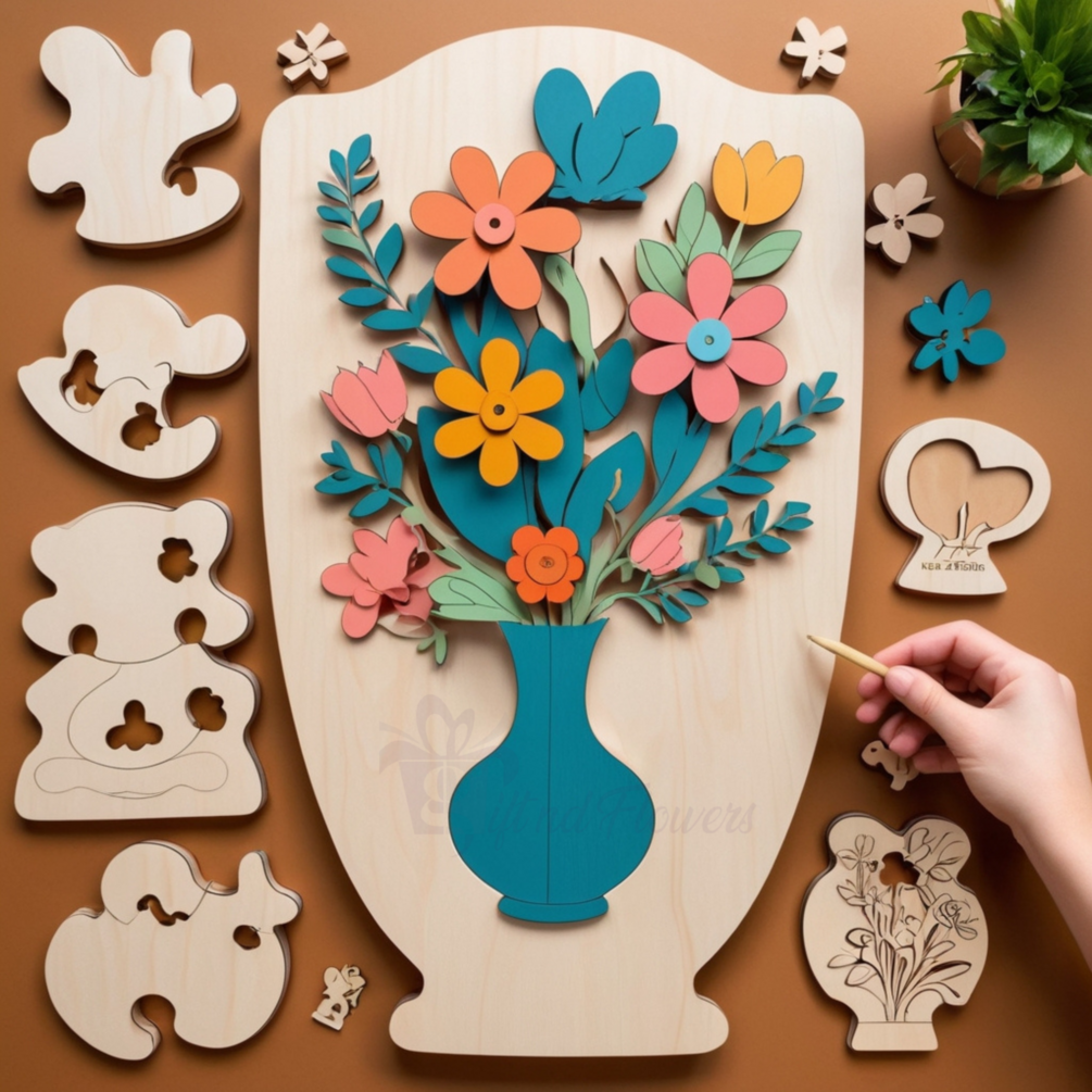 Bring creativity and playtime together with this Kids’ Puzzle Vase SVG – a unique laser-cut design that doubles as a charming home décor piece and an educational toy. Featuring detachable flowers and animal shapes, this kid-friendly vase encourages imaginative play while adding a whimsical touch to any nursery, playroom, or child’s space.