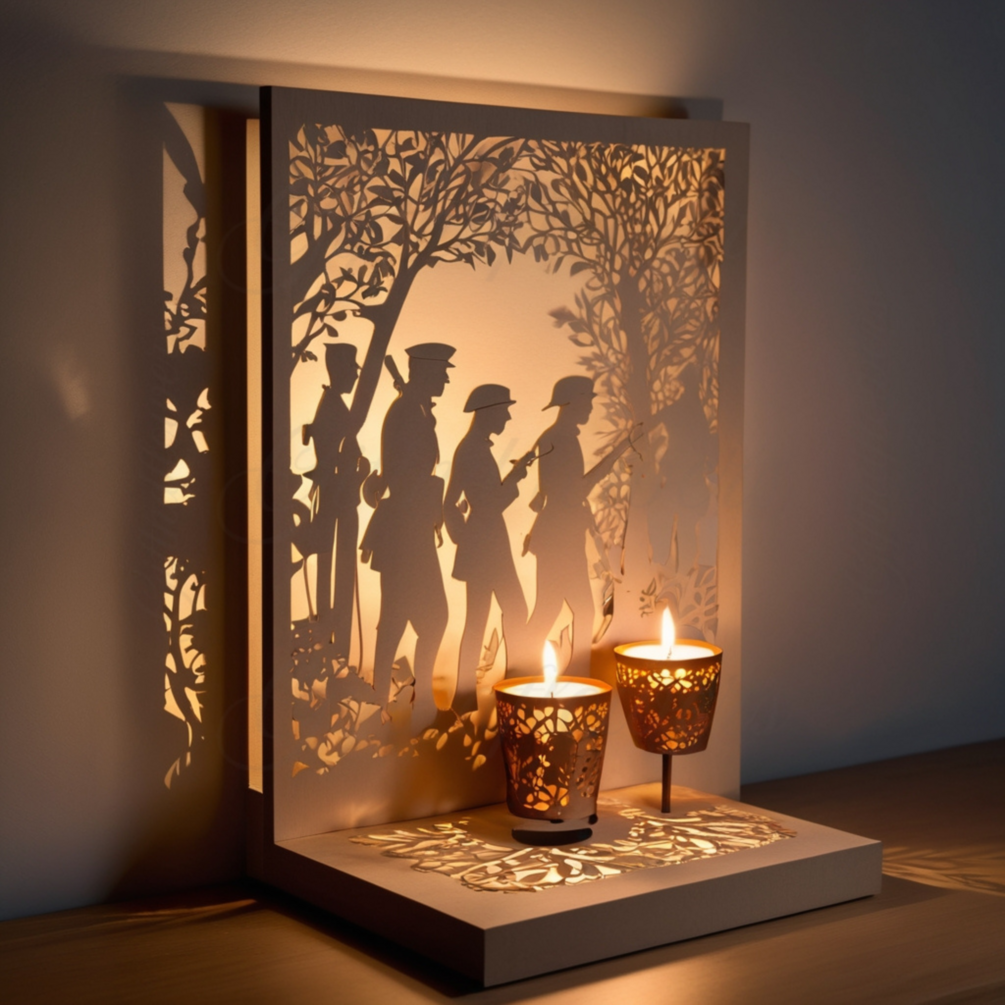 Honor and remember with this beautifully designed Remembrance Day Soldier Shadow Box SVG. Featuring intricate, layered silhouettes of soldiers among trees, this design creates a powerful tribute when backlit with LED tea lights or candles. Perfect for commemorating Veterans Day, Remembrance Day, or military memorials, this piece brings a heartfelt glow to any home, office, or public space.
